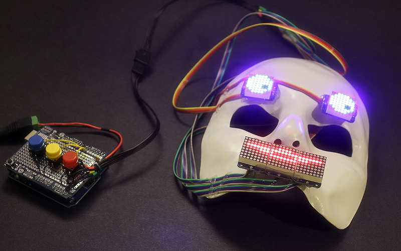 Another thought was to glue the displays to a mask, which could be worn under a “morph suit” — the LEDs are extremely bright and will show through the thin fabric.