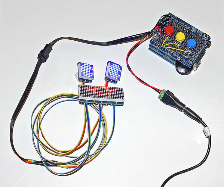 If this is your first introduction to the Adafruit LED backpacks, you should work through the LED Backpack tutorial first. Get a single matrix up and running, confirm that code and wiring are all correct before advancing to this “level 2” project.