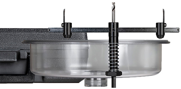 - Polycarbonate transparent dust shield collects dust and prevents chips from flying into eyes while cutting