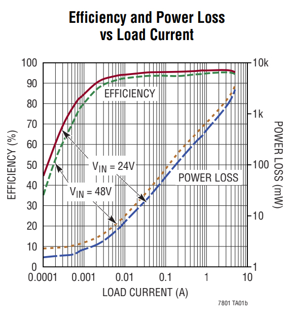The low 40 μA no-load quiescent current extends operating run time in battery-powered systems. OPTI-LOOP® compensation allows the transient response to be optimized over a wide range of output capacitance and ESR values. The LTC7801 features a precision 0.8 V reference and power good output indicator. The output voltage can be programmed between 0.8 V to 60 V using external resistors.