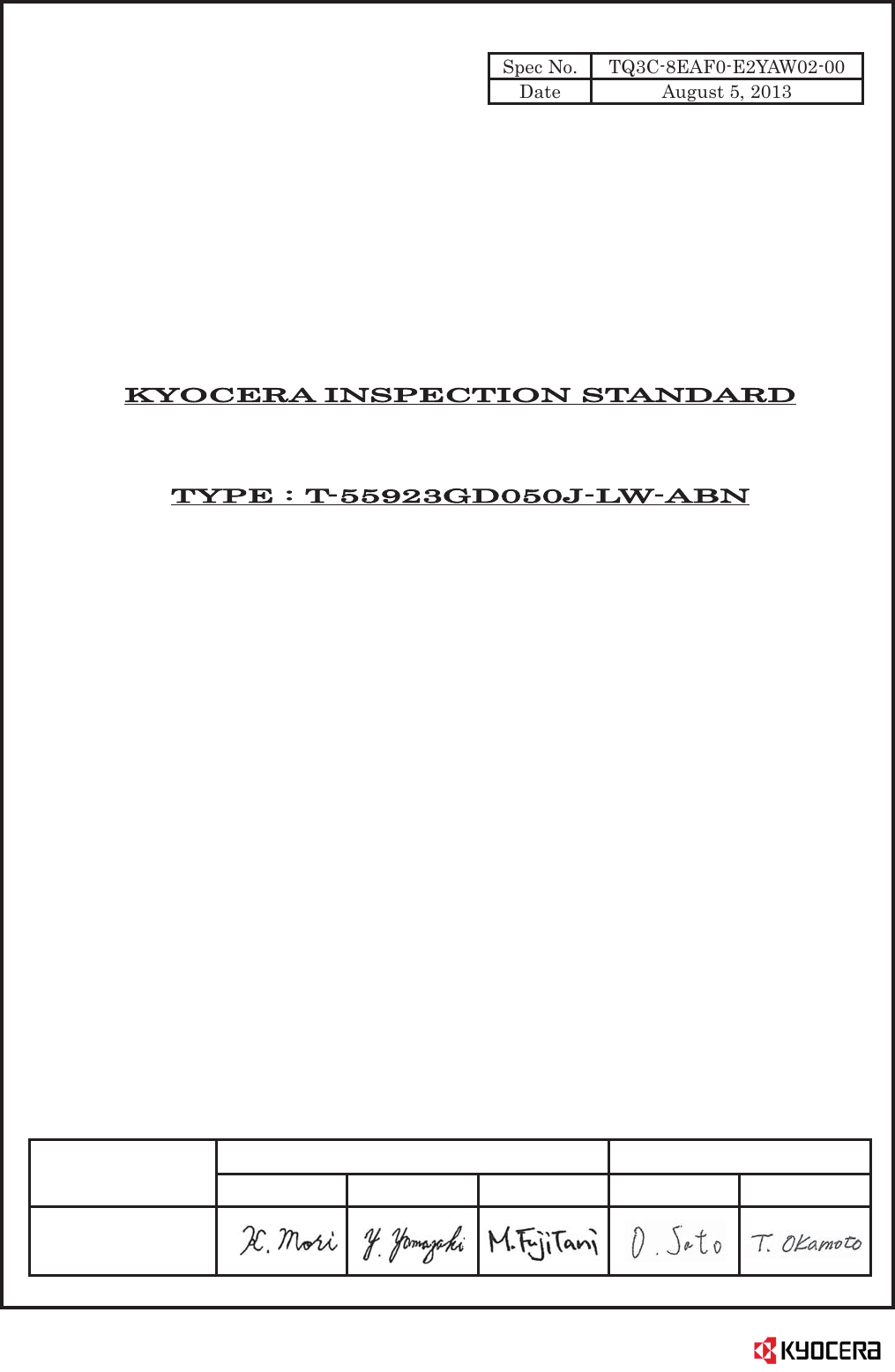 This document defines the specification of T-55923GD050J-LW-ABN. (RoHS Compliant)