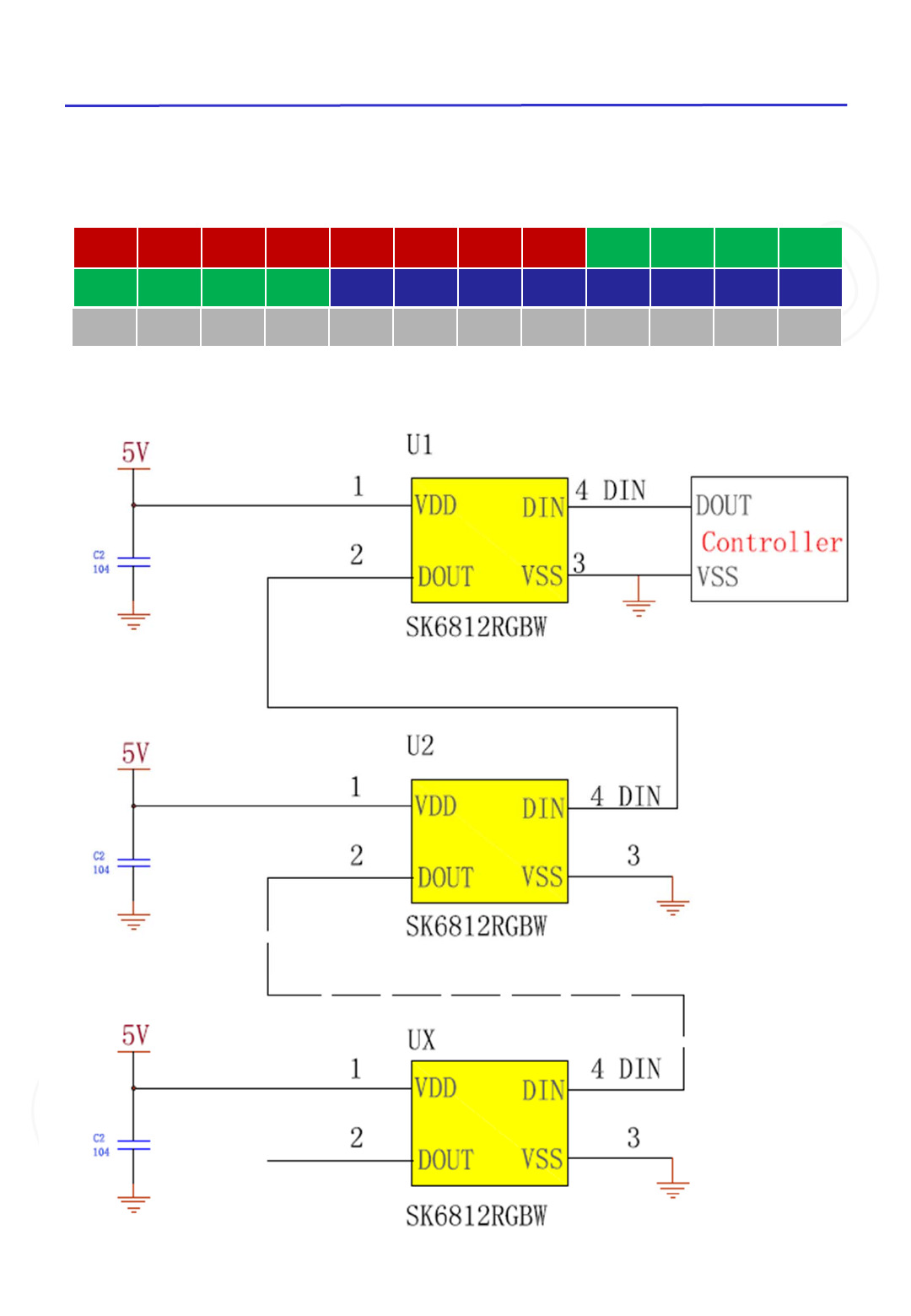 from the controller to DIN of the first element, and if it is accepted it is extracted pixel to pixel. After an